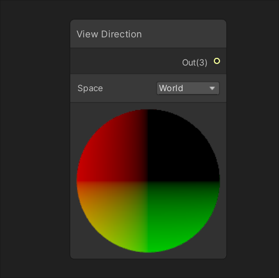 | Provides access to the mesh vertex or fragment's Vertex Color value. | Provides access to the mesh vertex or fragment's View Direction vector. |