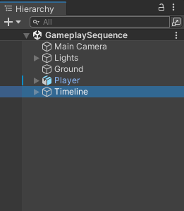 GameplaySequenceis the main Timeline instance. It is associated with theTimelineGameObject.Select the