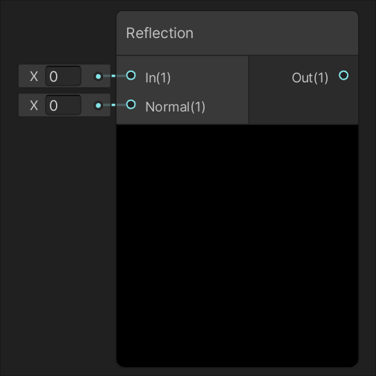 Returns the result of projecting the value of input A onto a straight line parallel to the value of input B. Returns a reflection vector using input In and a surface normal Normal.