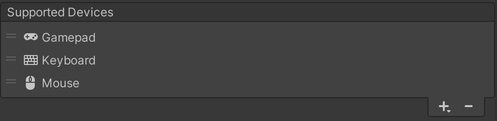 If Supported Devices is empty, no restrictions apply, which means that the Input System adds any Device that Unity recognizes and processes input for it. However, if Support Devices contains one or more entries, the Input System only adds Devices that are of one of the listed types.