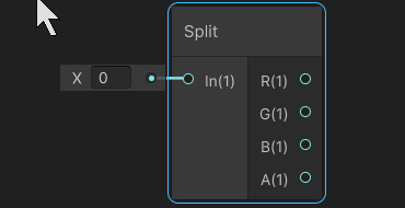 | Flips the individual channels of input In selected by the Node's parameters. | Splits the input vector In into four Float outputs R, G, B and A. |