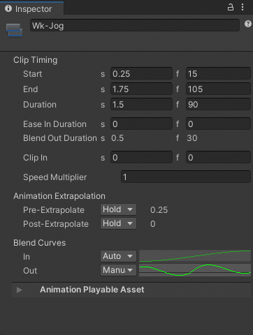 Inspector window when selecting an Animation clip in the Timeline window
