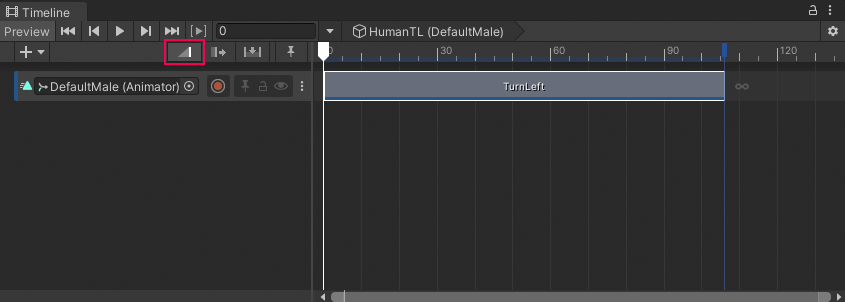 4. Play the Timeline instance. In this example, the DefaultMale animation jumps between each Animation clip because its position and rotation at the end of each clip does not match the position and rotation at the start of the next Animation clip.